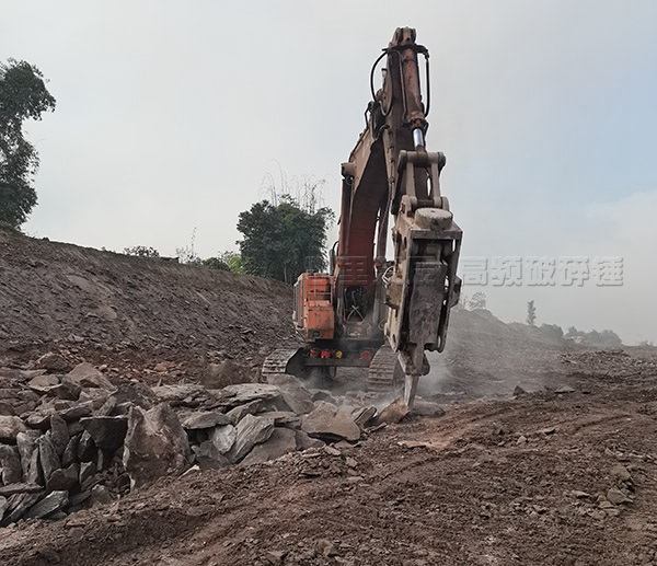 采用目前高頻破碎錘中的三疊加8軸聯動的振動箱技術,適配于50T-100T的挖掘機,可突破石灰巖等整體性較強的巖體。