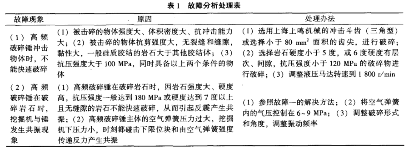 高頻破碎錘故障處理及注意事項